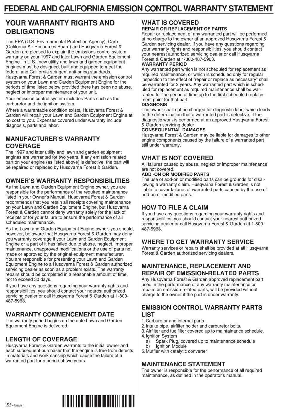 FEDERAL AND CALIFORNIA EMISSION CONTROL WARRANTY STATEMENT