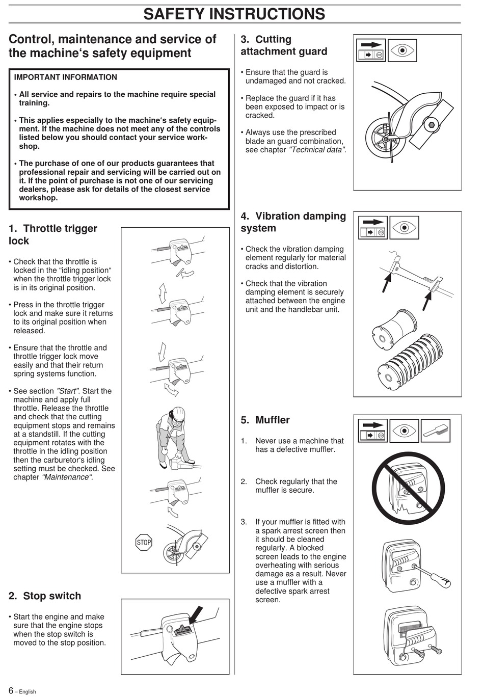 • This applies especially to the machine's safety equip-