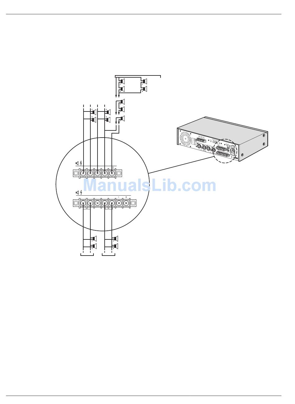 arrangement to make the combined impedance 8 ohm or higher. Check the loudspeaker