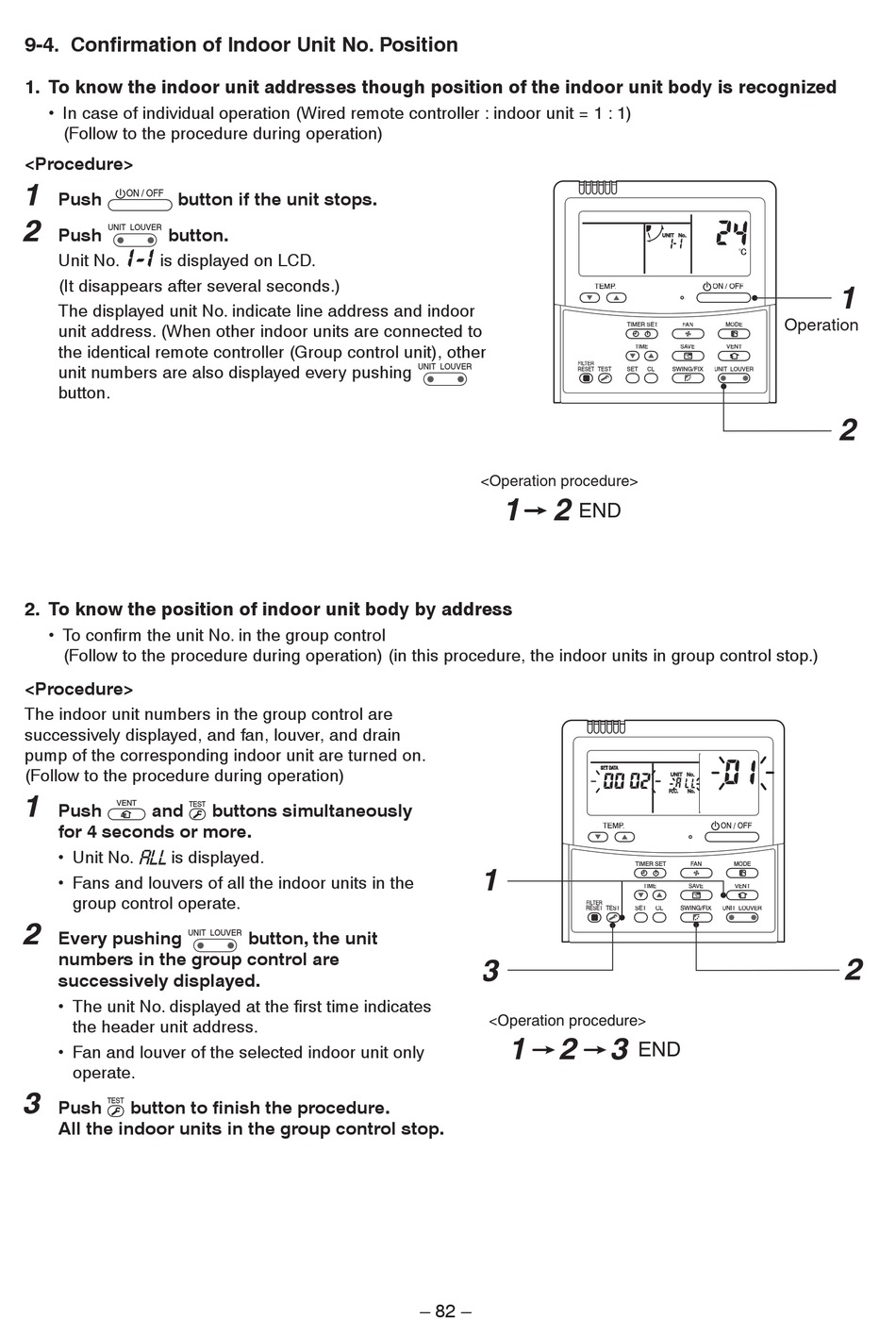 9-4. Confirmation of Indoor Unit No. Position