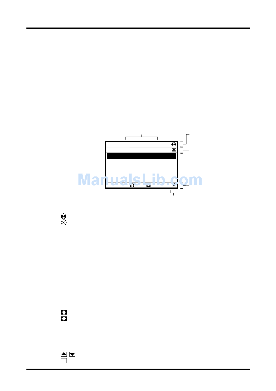 The abbreviations and graphical symbols in the window correspond to the [F1] to
