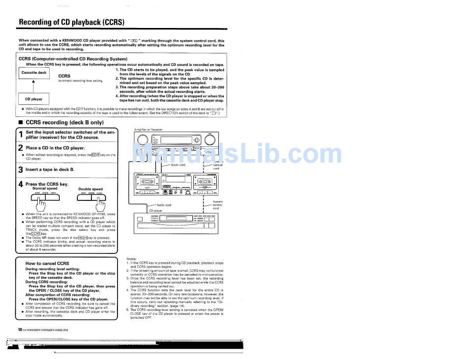 Recording Of Cd Playback (Ccrs); Ccrs Recording; How To Cancel Ccrs - Kenwood Kx-W4050 Instruction Manual