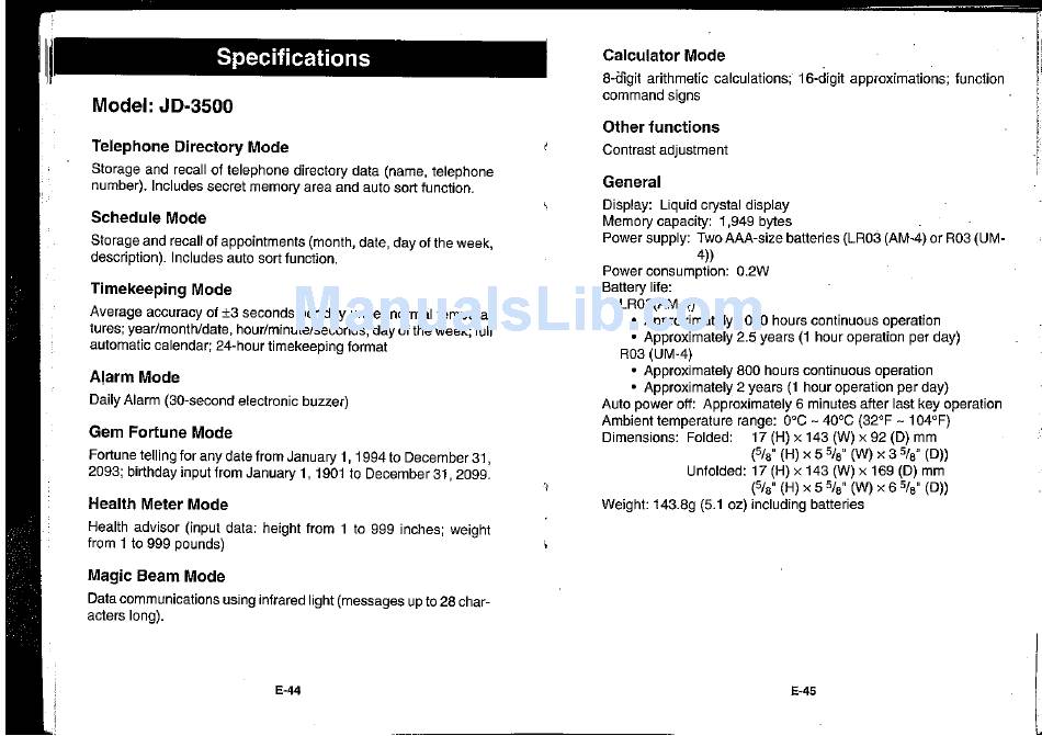 Organizer Casio My Magic Diary JD-5000 Operation Manual