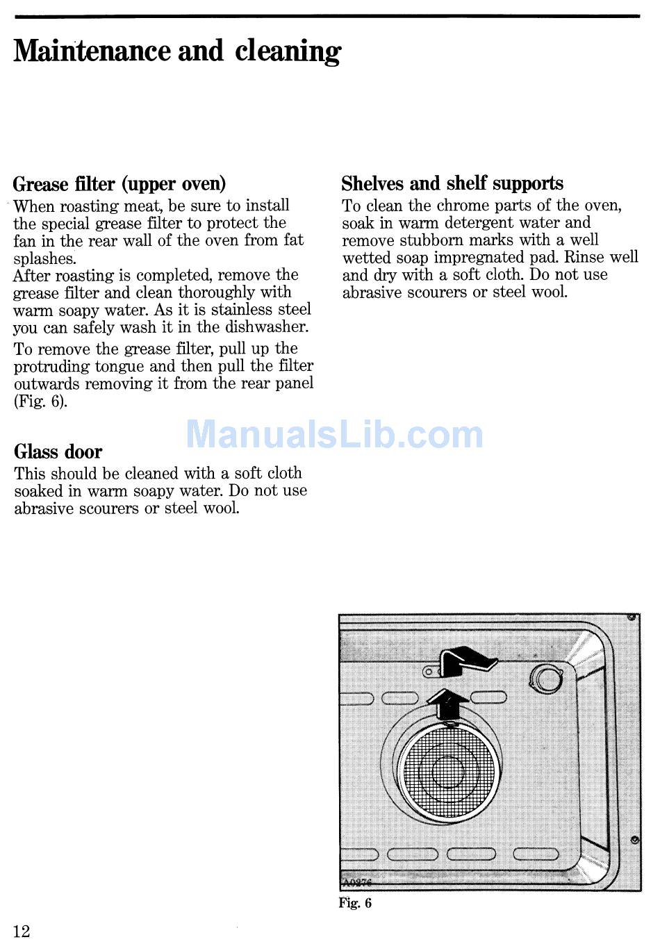 Maintenance And Cleaning; Grease Filter (Upper Oven); Shelves And Shelf Supports; Glass Door - Zanussi Fm 9232 Instructions For Use Manual