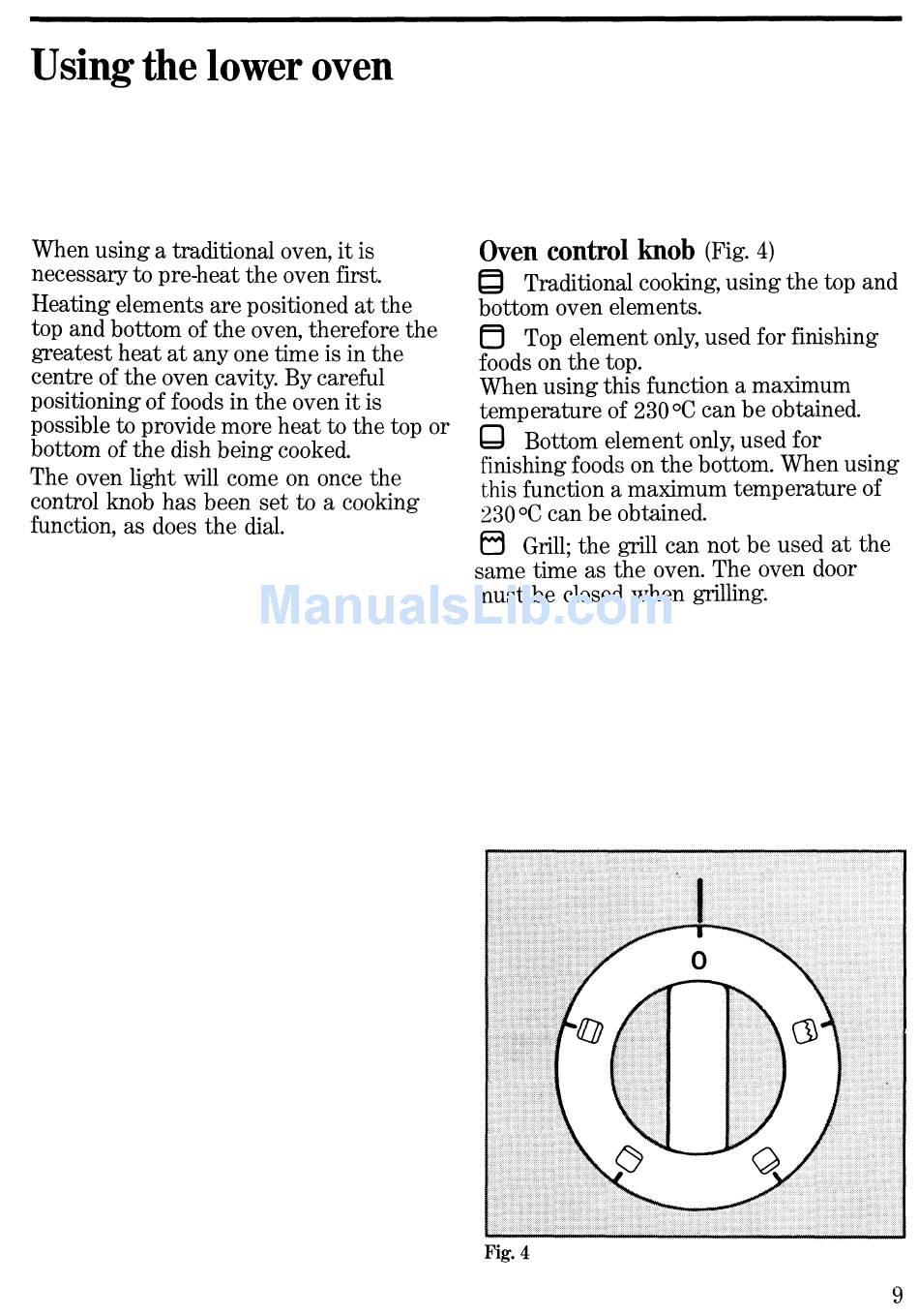 Using The Lower Oven - Zanussi Fm 9232 Instructions For Use Manual