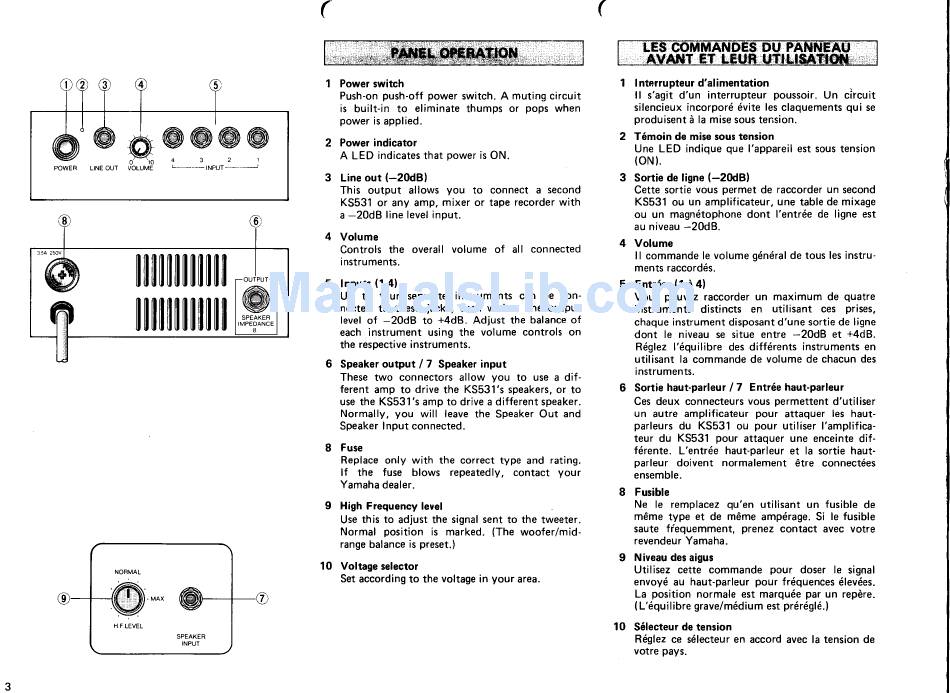 Musical Instrument Amplifier Yamaha KS531 Owner's Manual