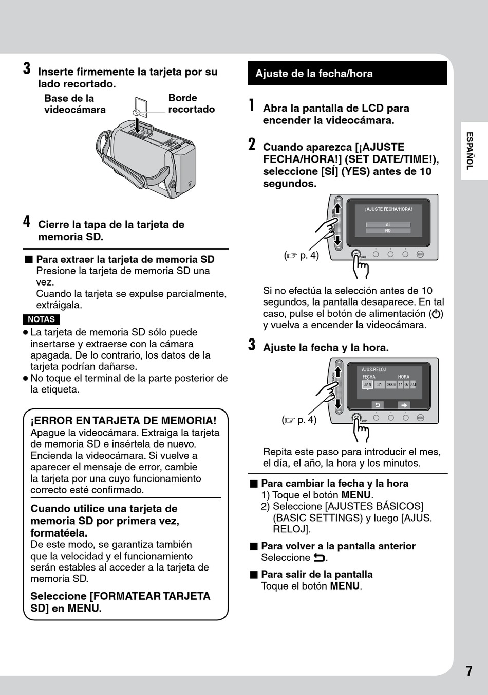 Apague la videocámara. Extraiga la tarjeta