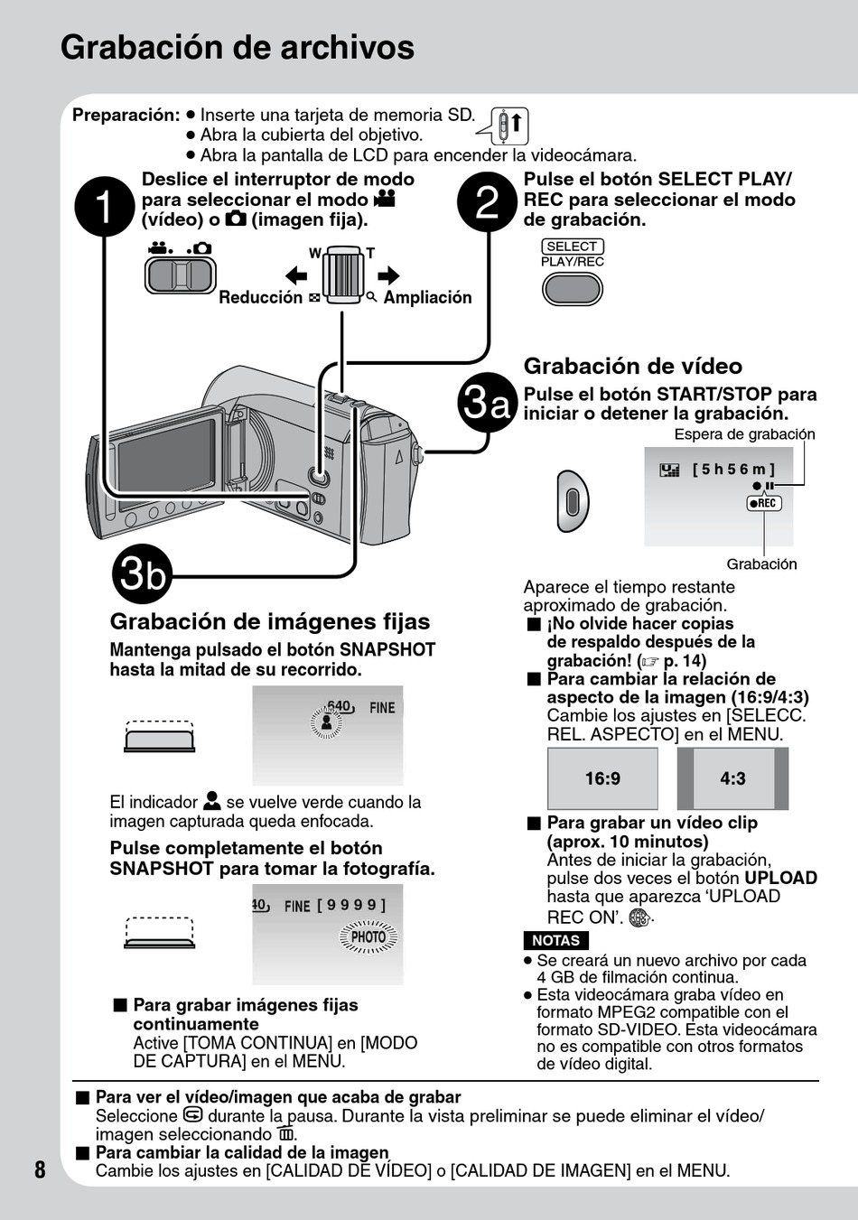 formato SD-VIDEO. Esta videocámara