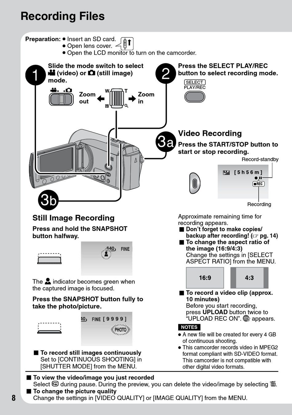 This camcorder records video in MPEG2