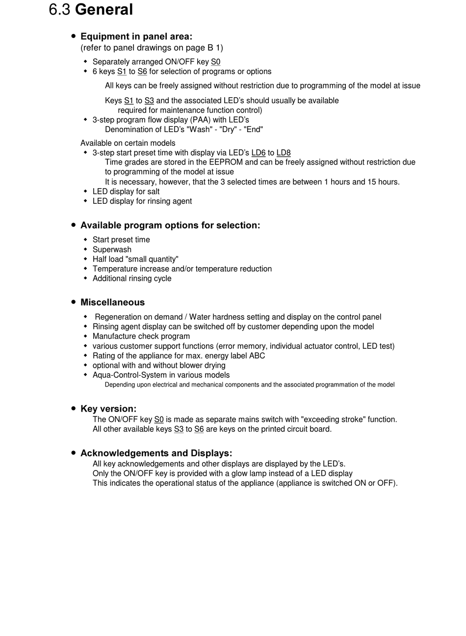 w Rinsing agent display can be switched off by customer depending upon the model