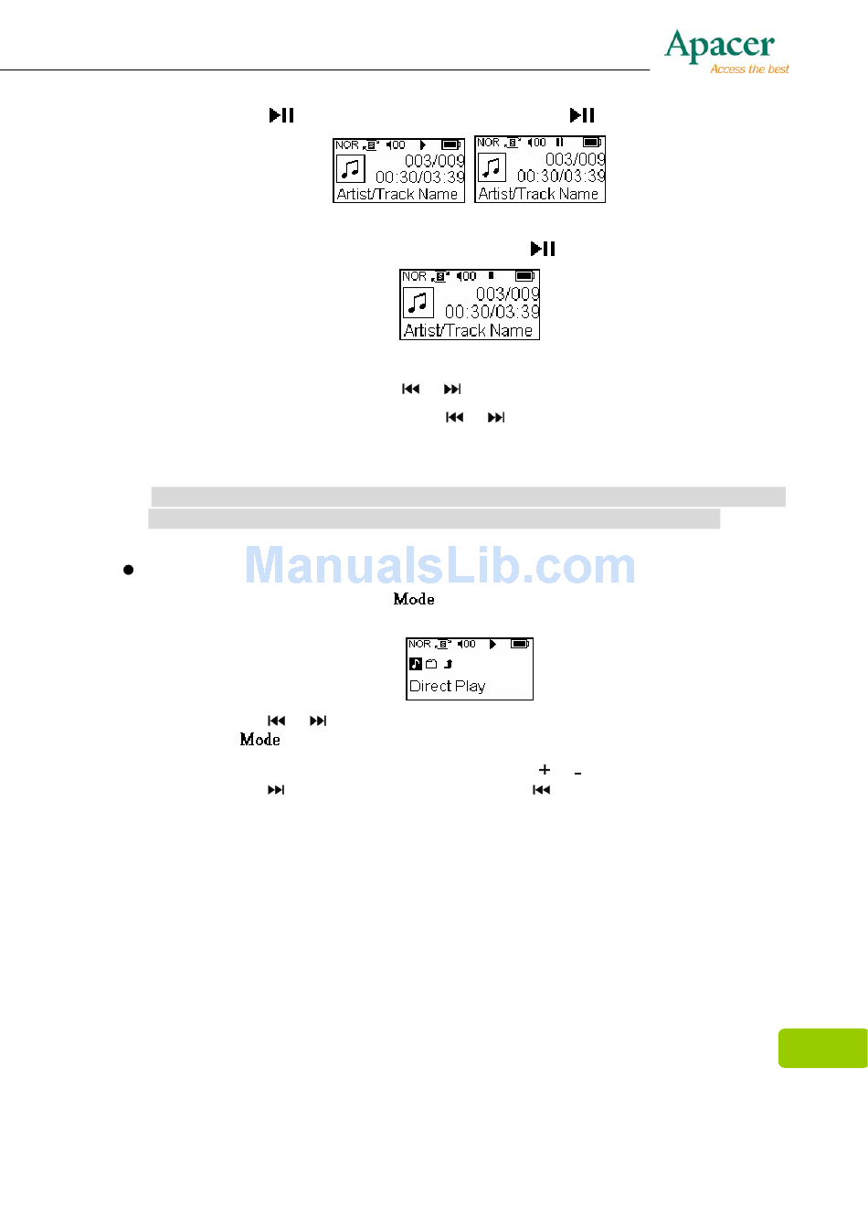 key to playing MP3 file, Press the