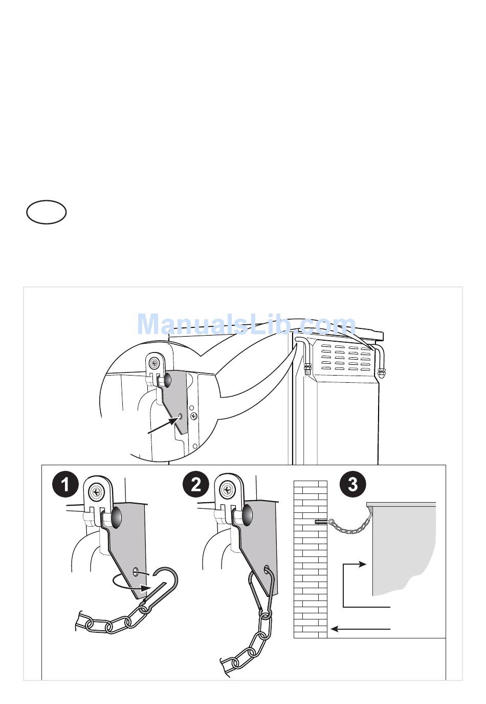 It is a requirement that a restraining chain (not supplied with the appliance) is also used to