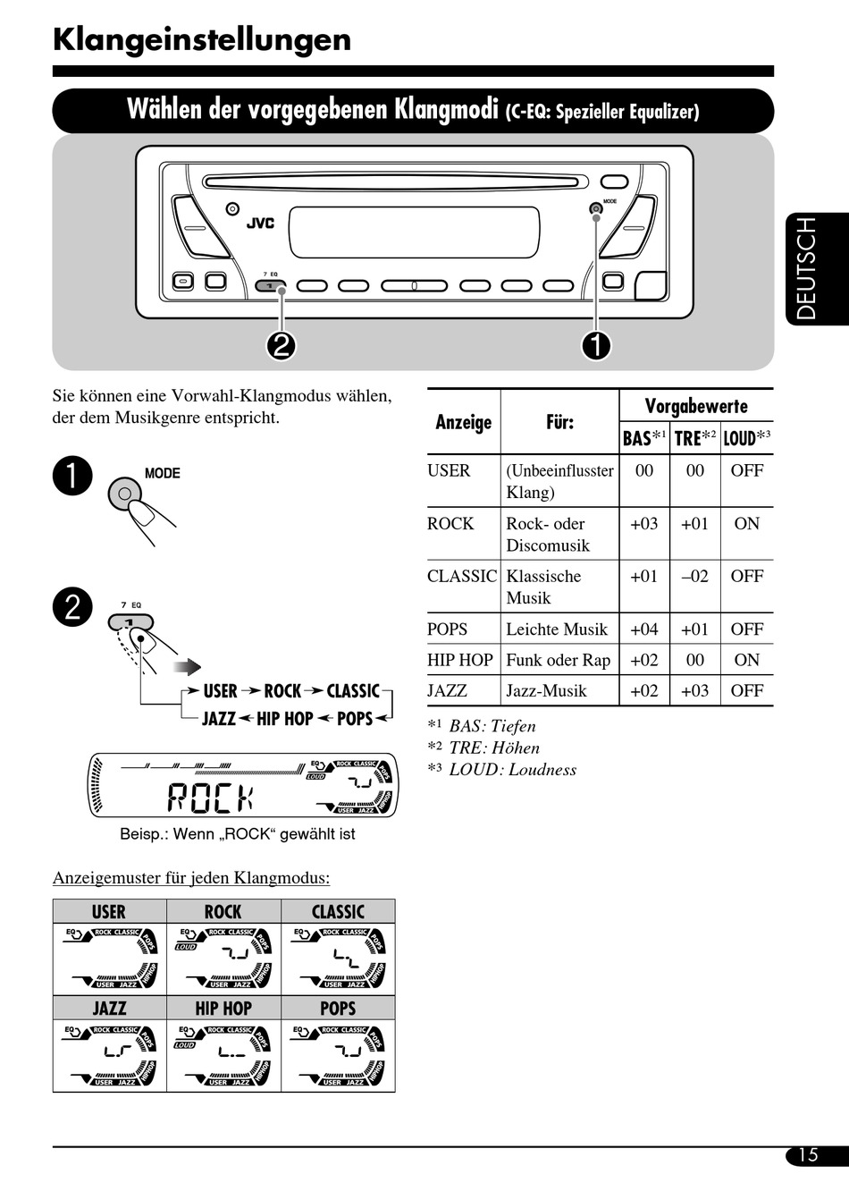 Beisp.: Wenn „ROCK" gewählt ist