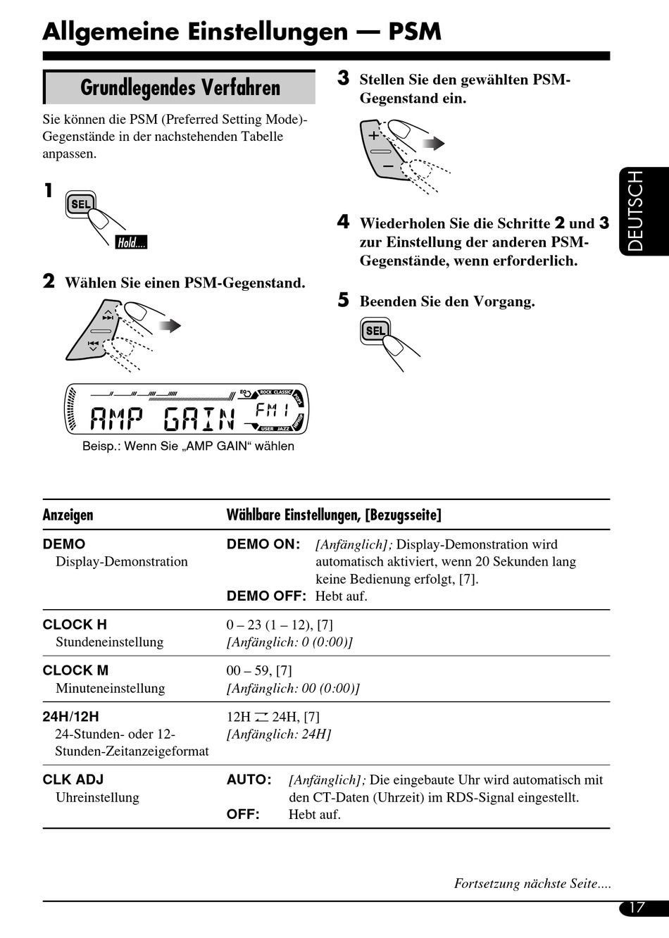 zur Einstellung der anderen PSM-