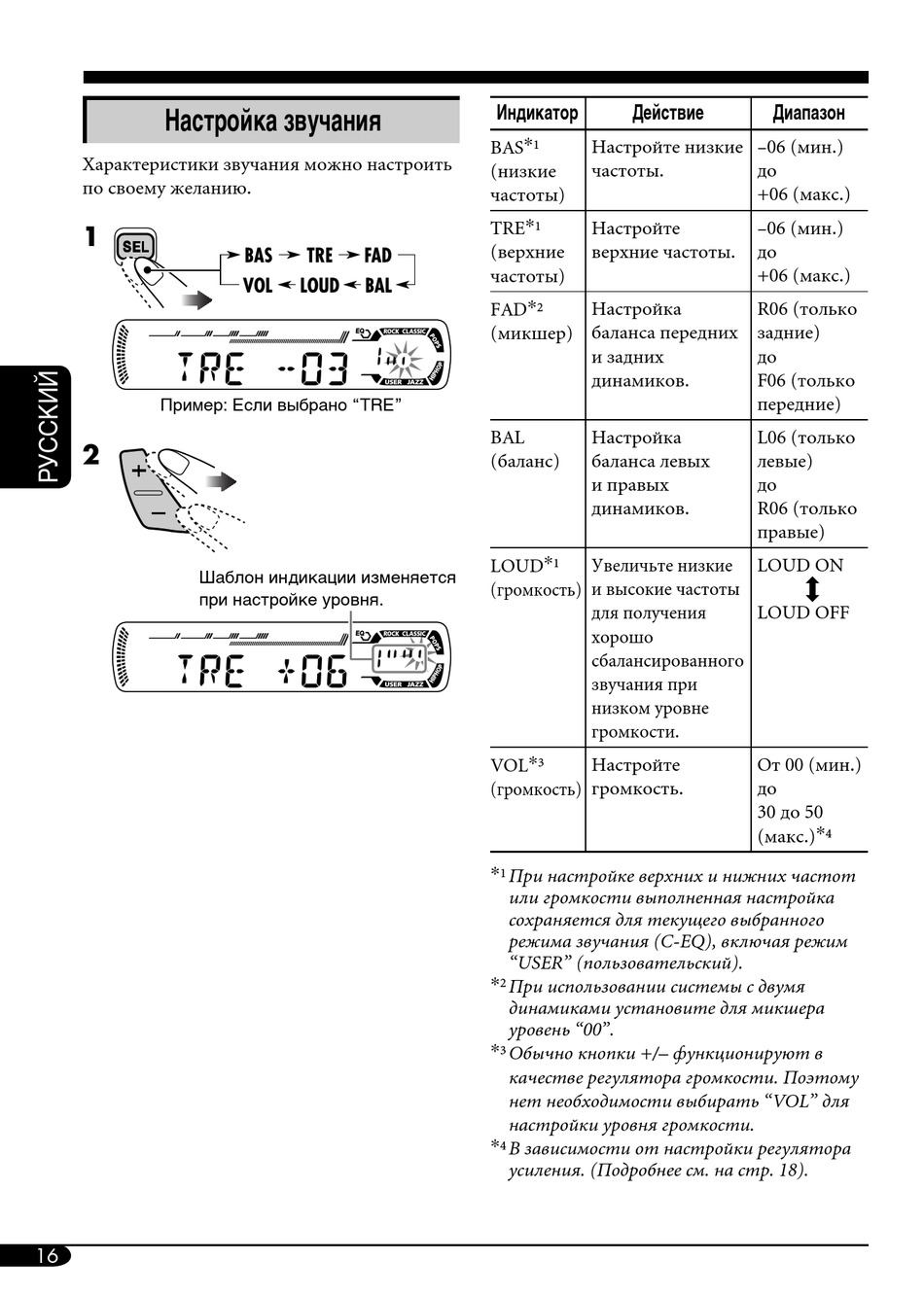 * Обычно кнопки +/– функционируют в