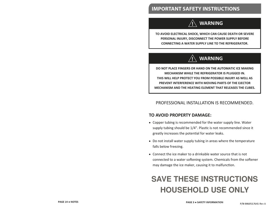 DO NOT PLACE FINGERS OR HAND ON THE AUTOMATIC ICE MAKING