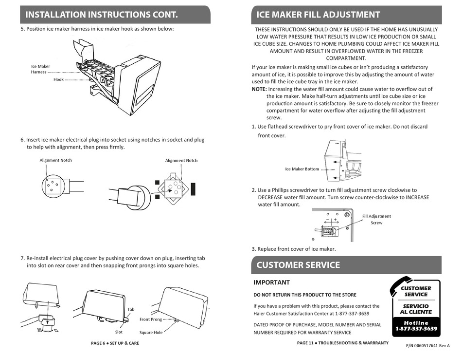 ICE CUBE SIZE. CHANGES TO HOME PLUMBING COULD AFFECT ICE MAKER FILL