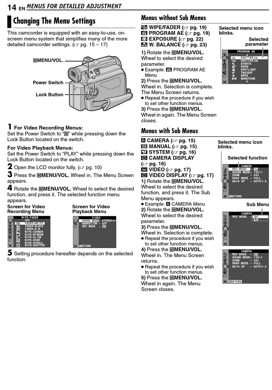 For Video Recording Menus:
