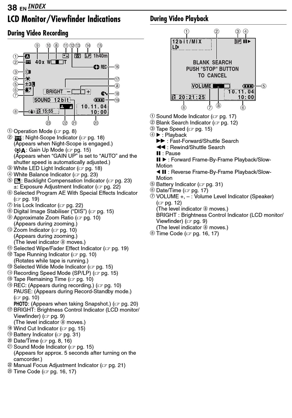 LCD Monitor/Viewfinder Indications