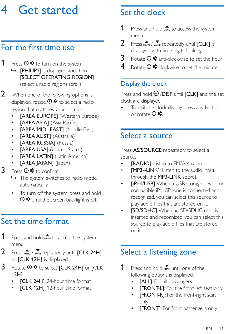 Select a listening zone