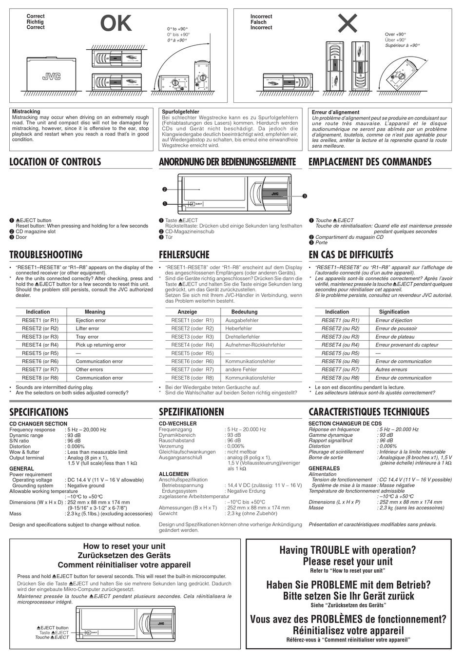 Si le problème persiste, consultez un revendeur JVC autorisé.