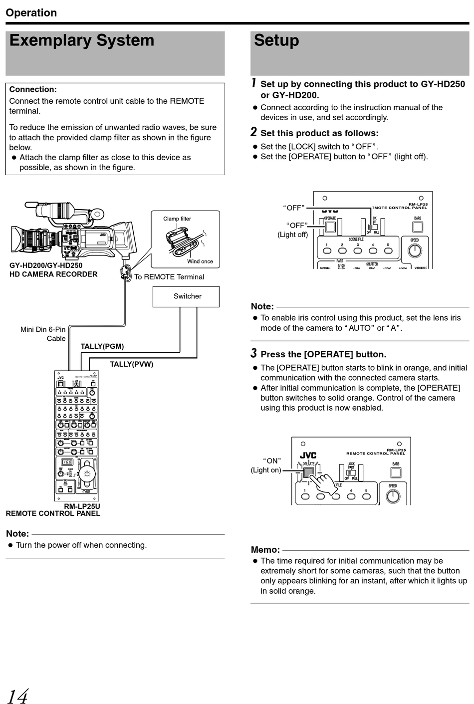 Set up by connecting this product to GY-HD250