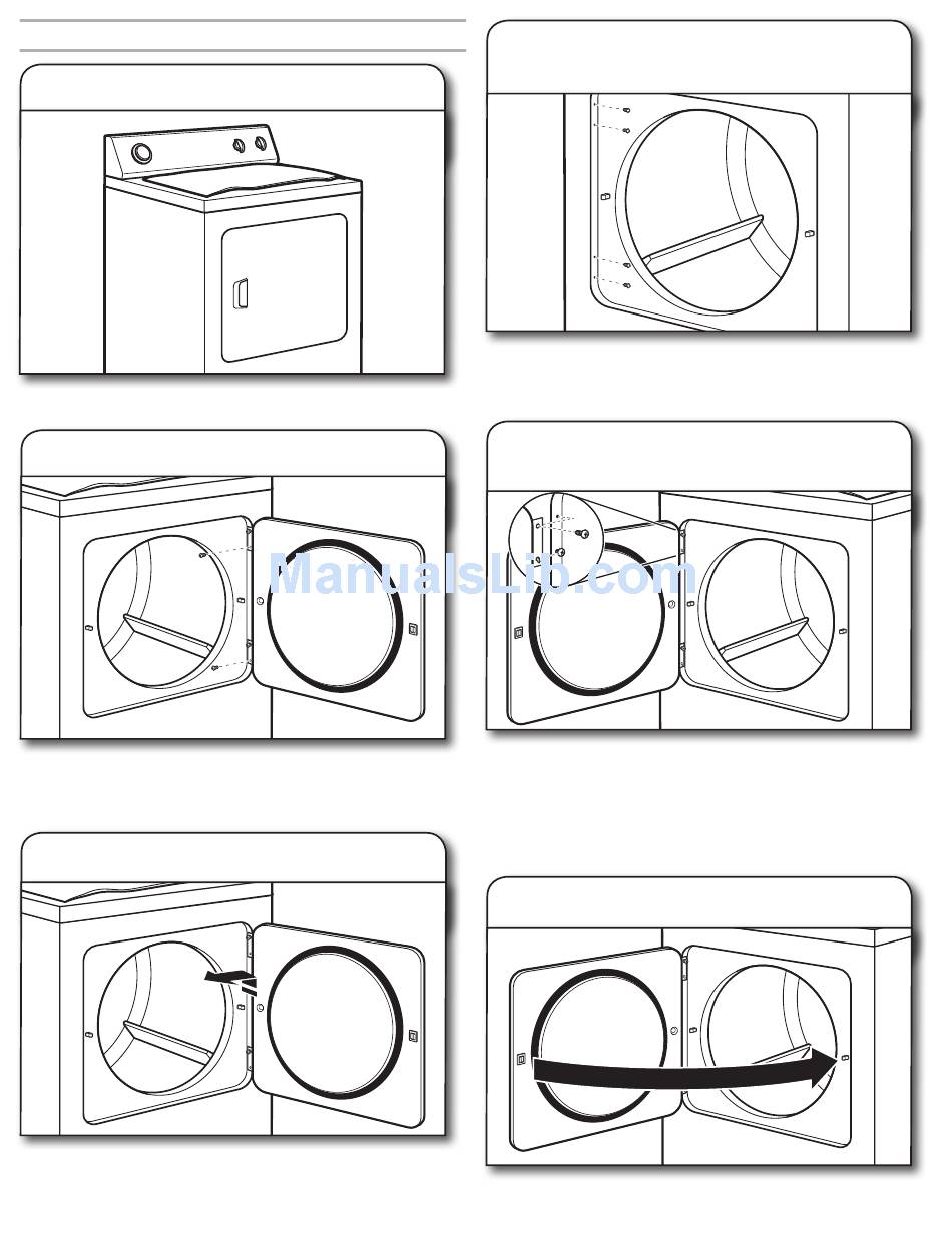 slot. Pull door forward off screws. Set door on top of dryer.