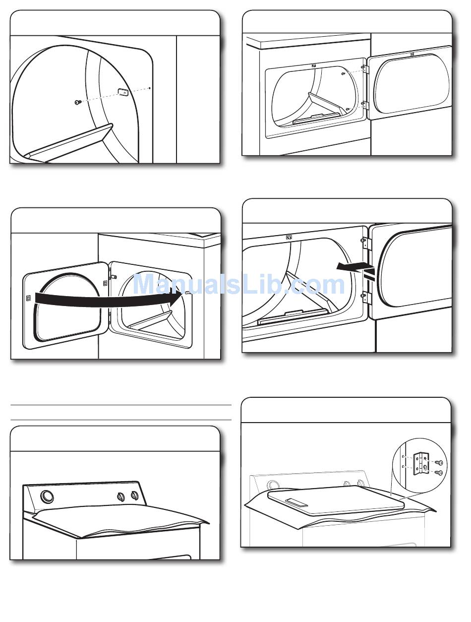 side of hinges. Loosen (do not remove) top screws from dryer