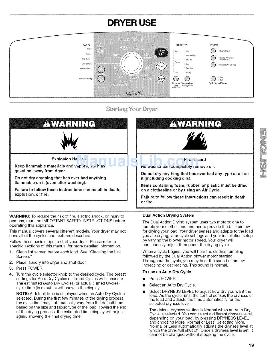 This manual covers several different models. Your dryer may not