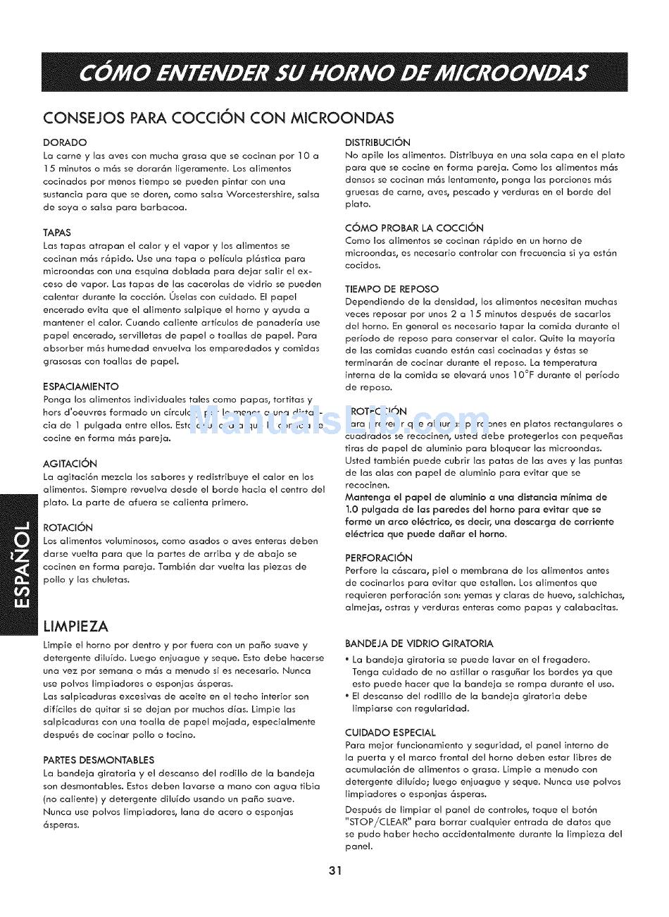 Consejos Para Cocci6N Con Microondas; Limpieza - Kenmore Elite 721. 7920 Use And Care Manual