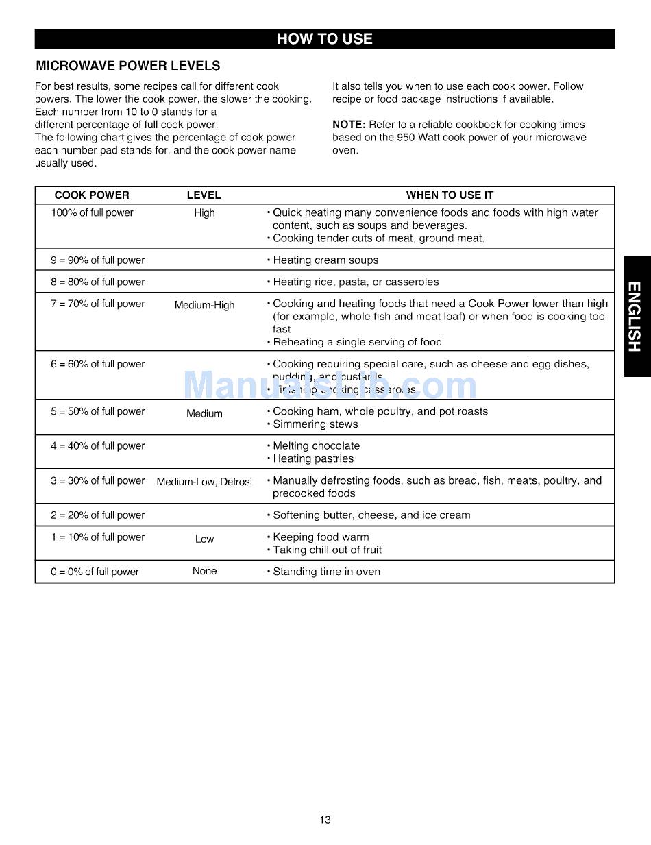 powers. The lower the cook power, the slower the cooking.