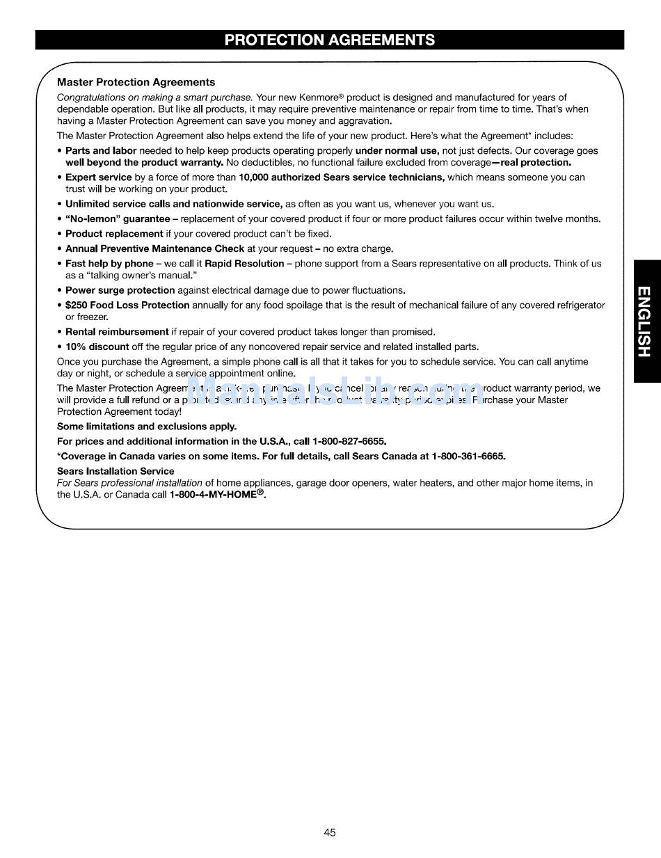 in Canada varies on some items. For full details, call Sears Canada at 1-800-361-6665.