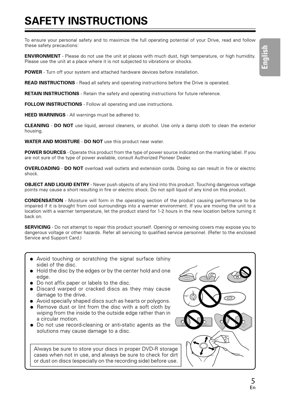 or dust on discs (especially on the recording side) before use.