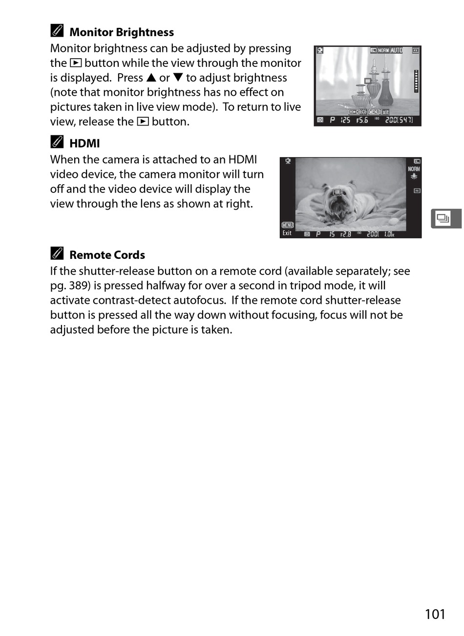 activate contrast-detect autofocus. If the remote cord shutter-release