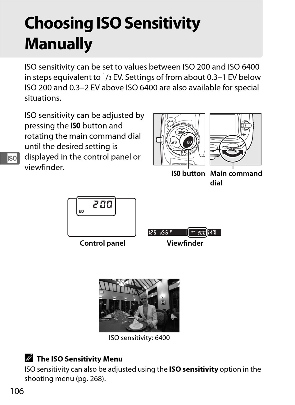 ISO sensitivity can be set to values between ISO 200 and ISO 6400