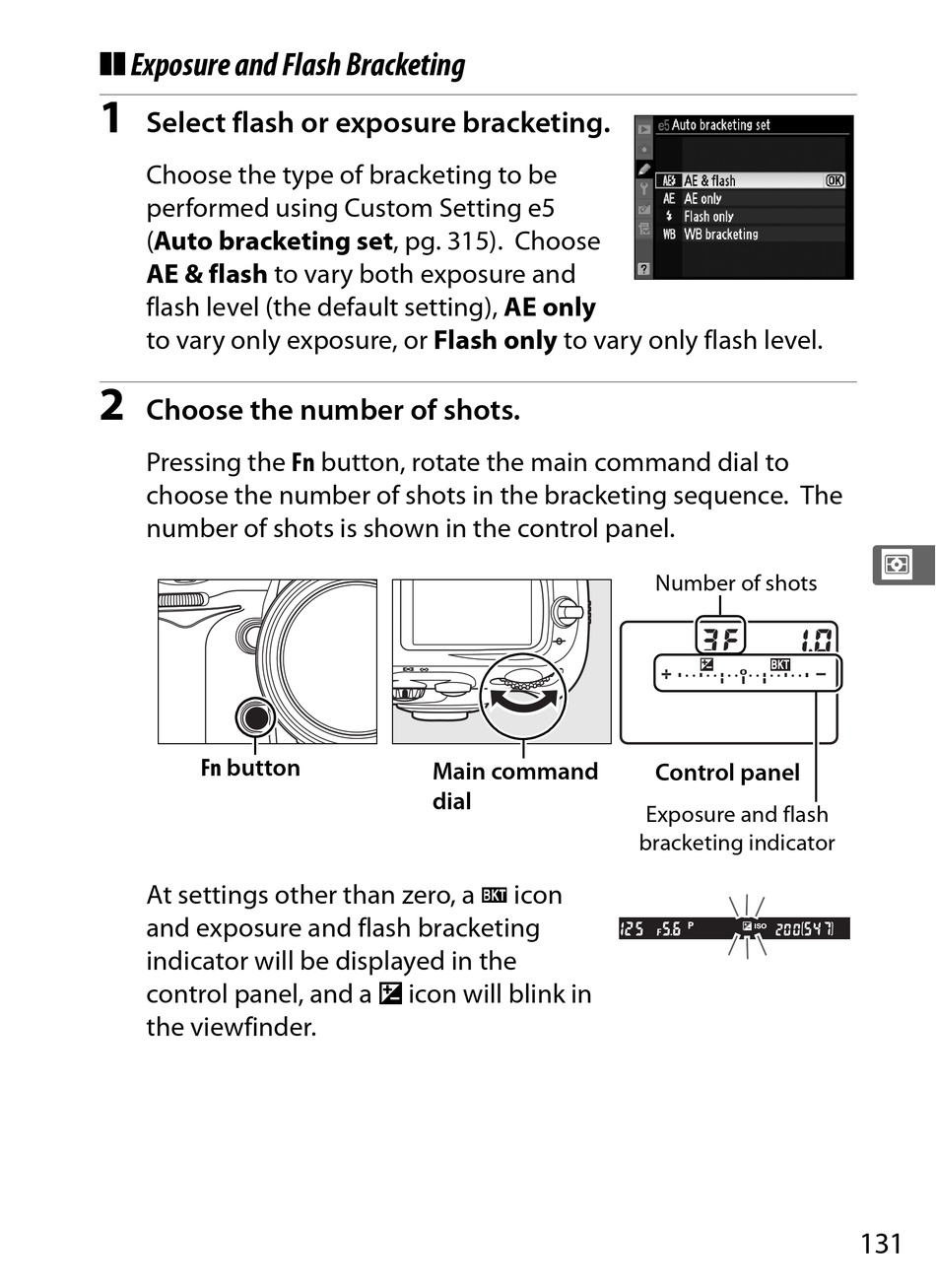 (Auto bracketing set, pg. 315). Choose