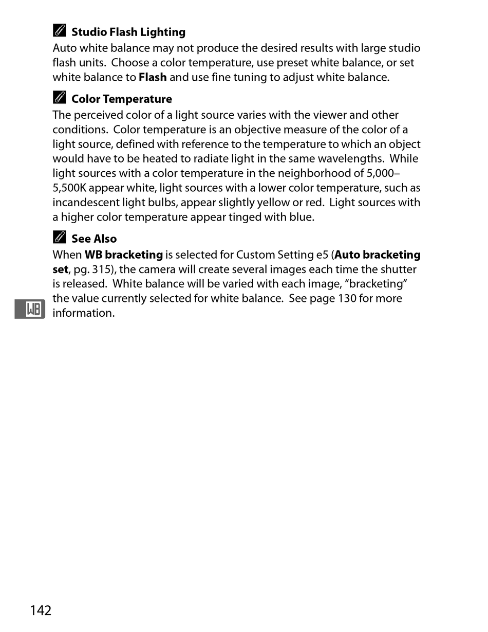 flash units. Choose a color temperature, use preset white balance, or set