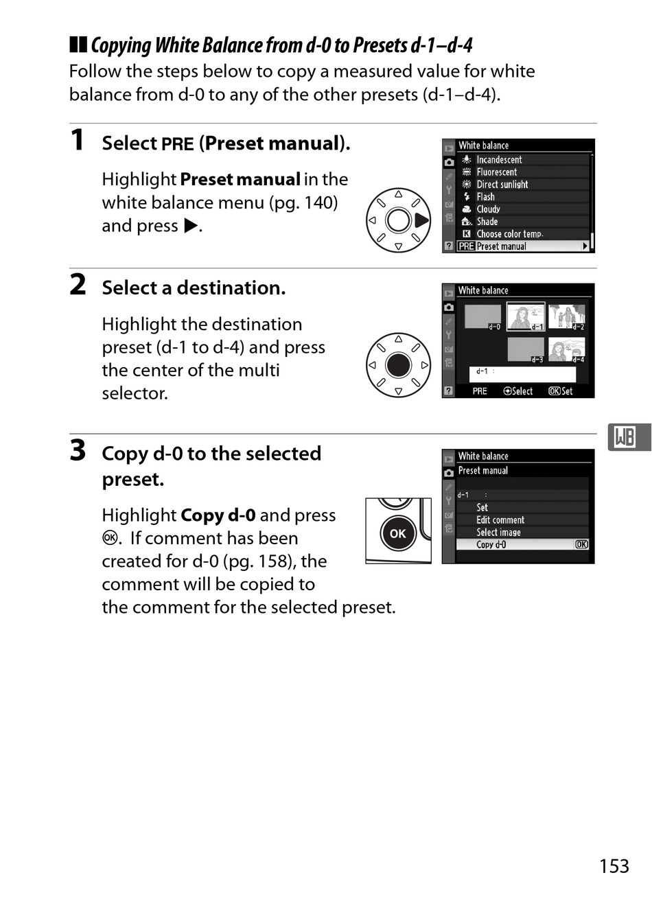 ❚❚ Copying White Balance from d-0 to Presets d-1–d-4