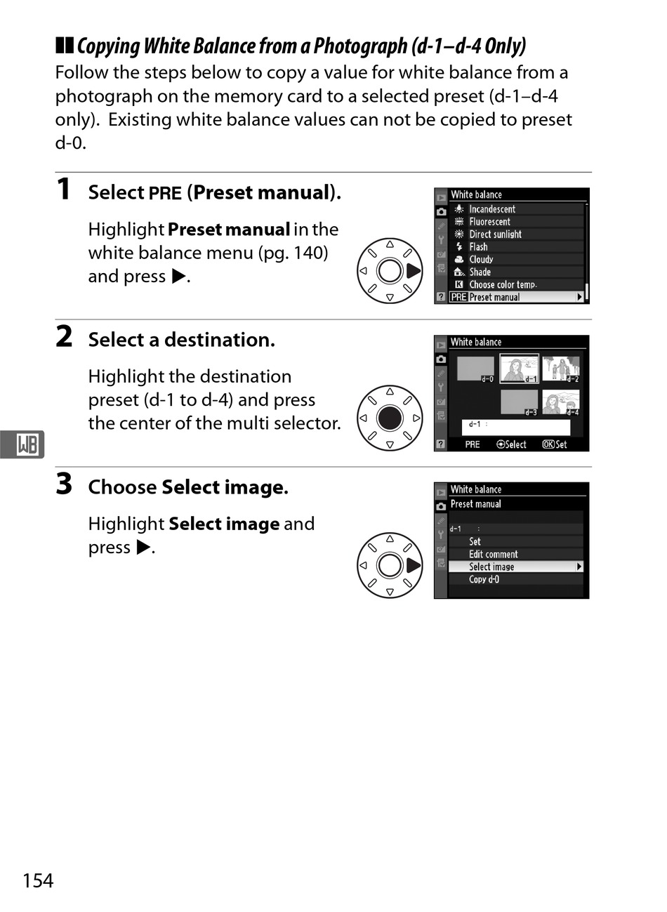 ❚❚ Copying White Balance from a Photograph (d-1–d-4 Only)