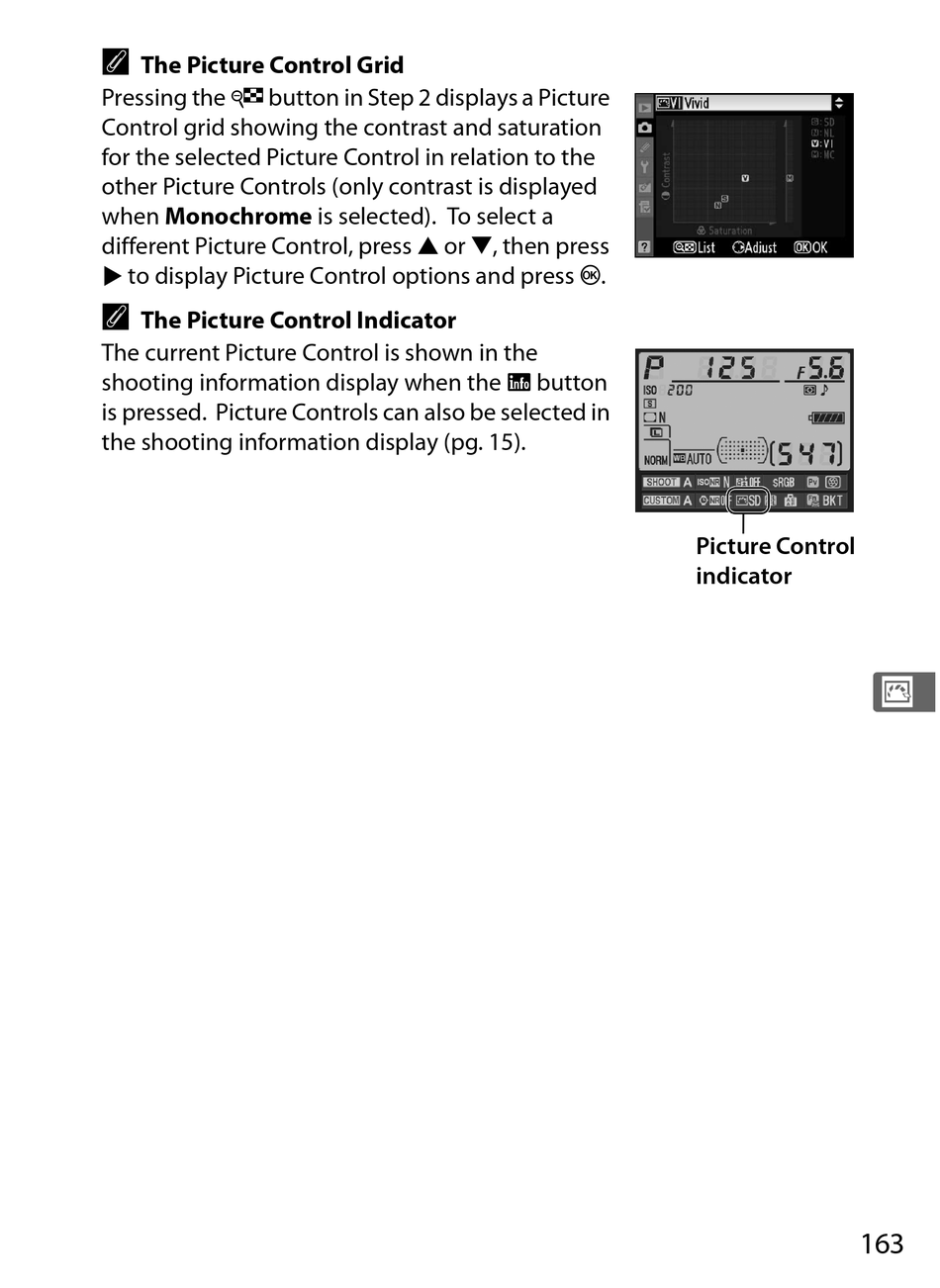 is pressed. Picture Controls can also be selected in