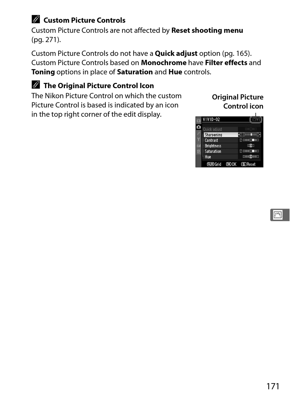 Custom Picture Controls do not have a Quick adjust option (pg. 165).