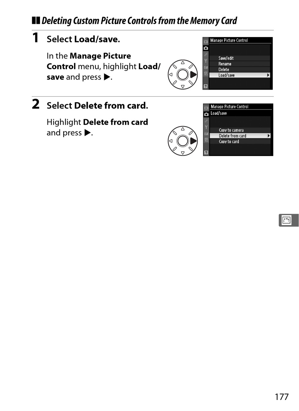 ❚❚ Deleting Custom Picture Controls from the Memory Card