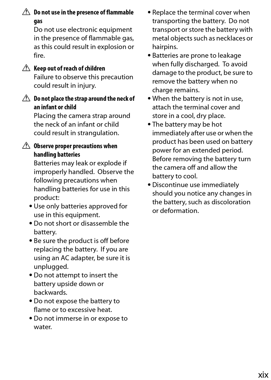 Batteries may leak or explode if