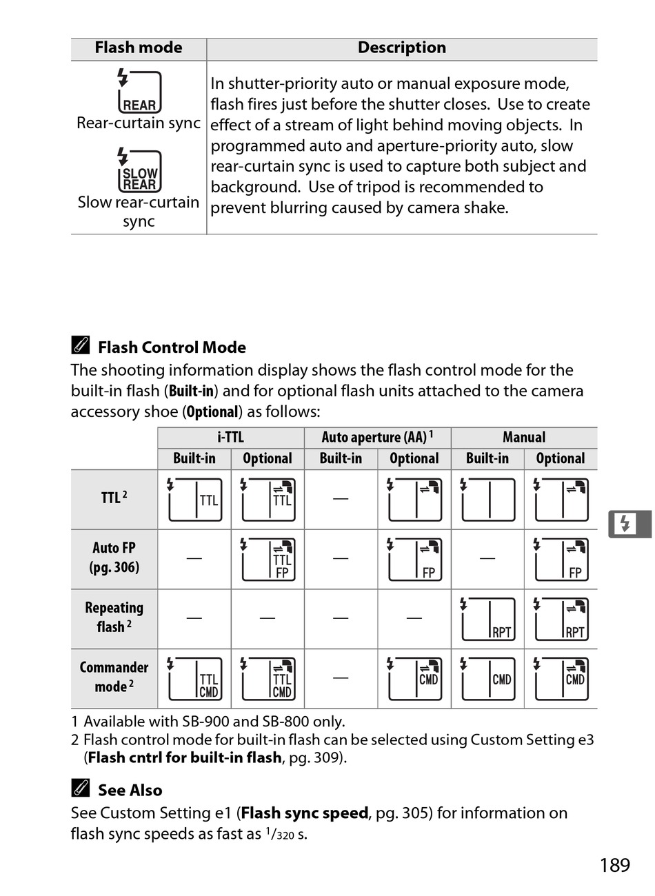 See Custom Setting e1 (Flash sync speed, pg. 305) for information on