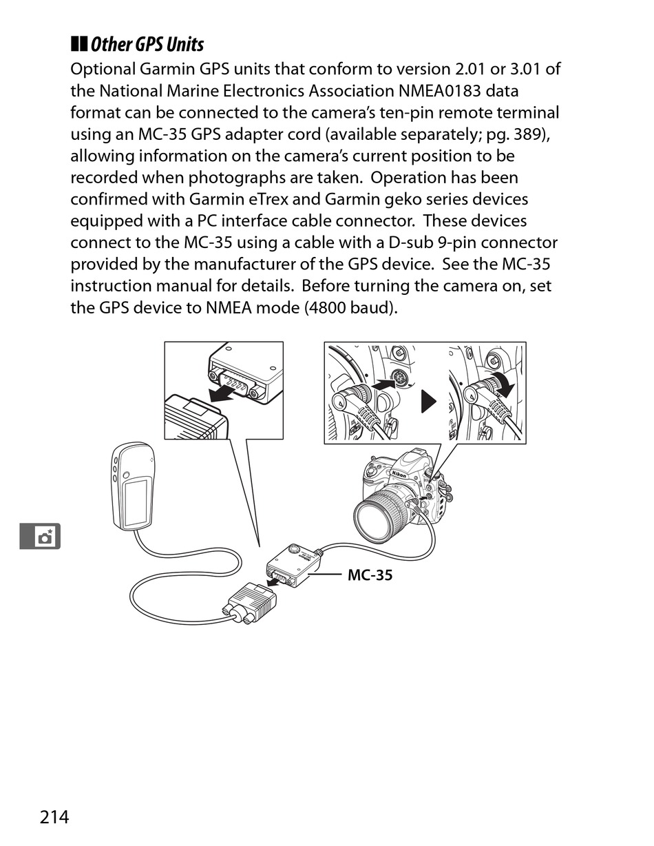 using an MC-35 GPS adapter cord (available separately; pg. 389),