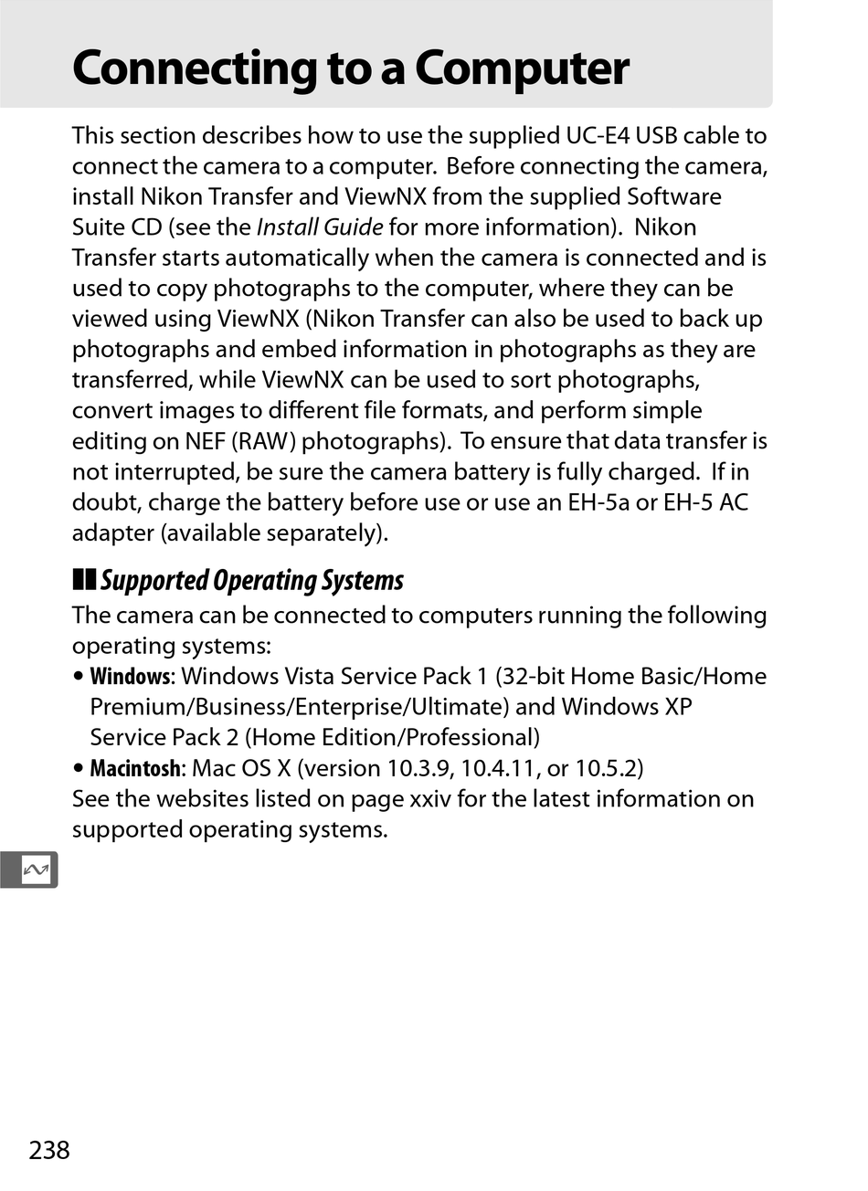 editing on NEF (RAW) photographs). To ensure that data transfer is