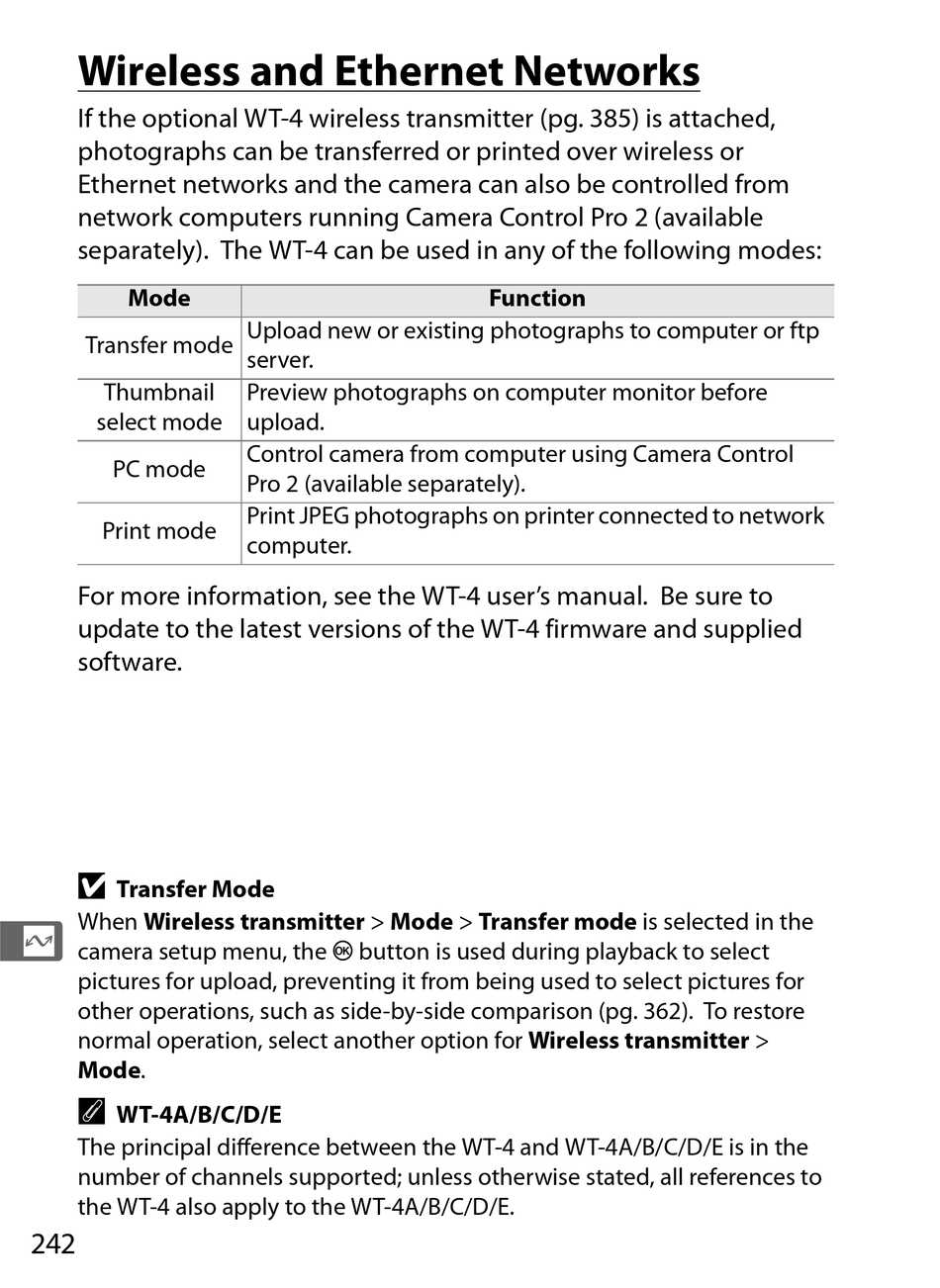 For more information, see the WT-4 user's manual. Be sure to