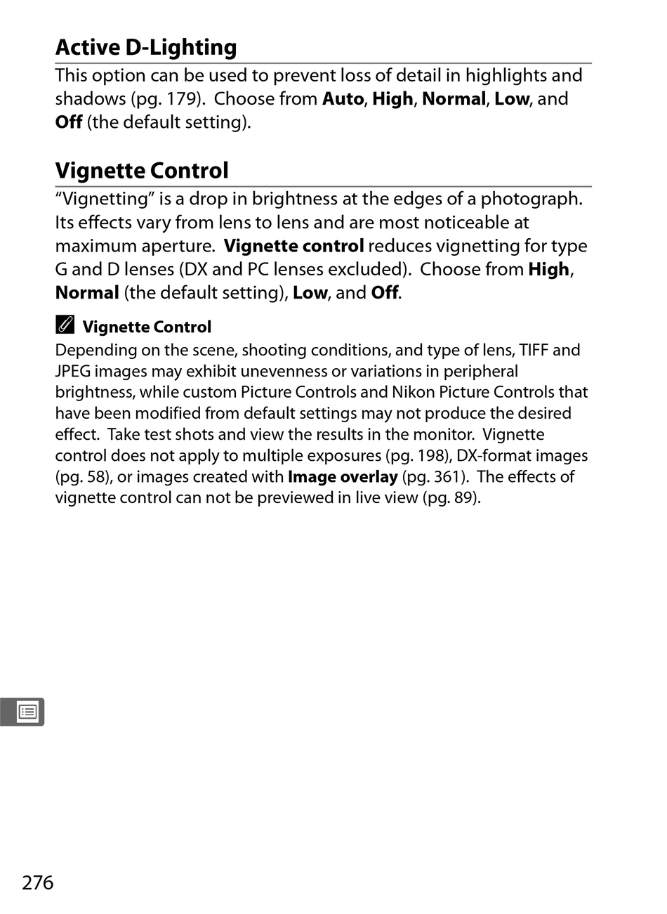 control does not apply to multiple exposures (pg. 198), DX-format images