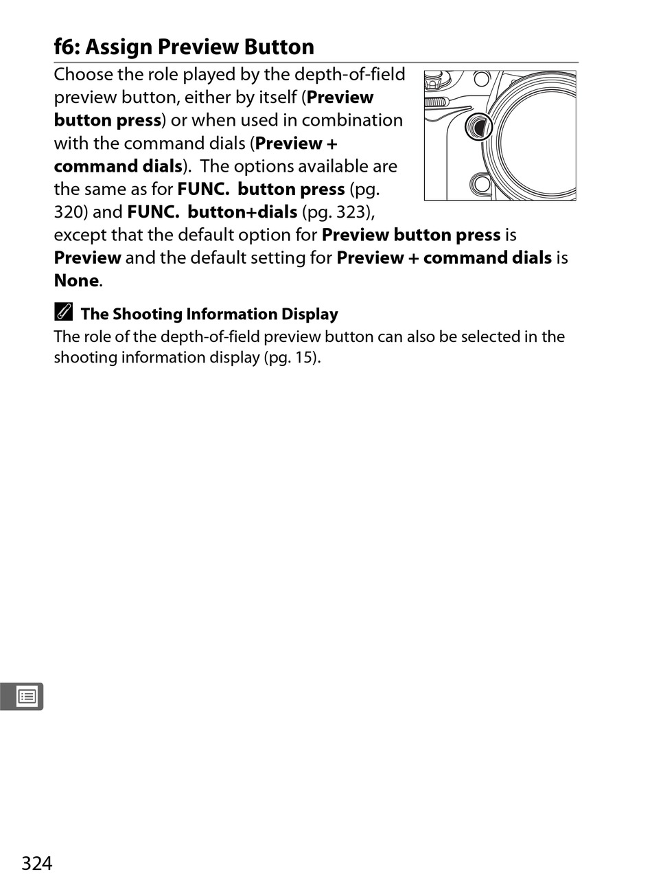 The role of the depth-of-field preview button can also be selected in the