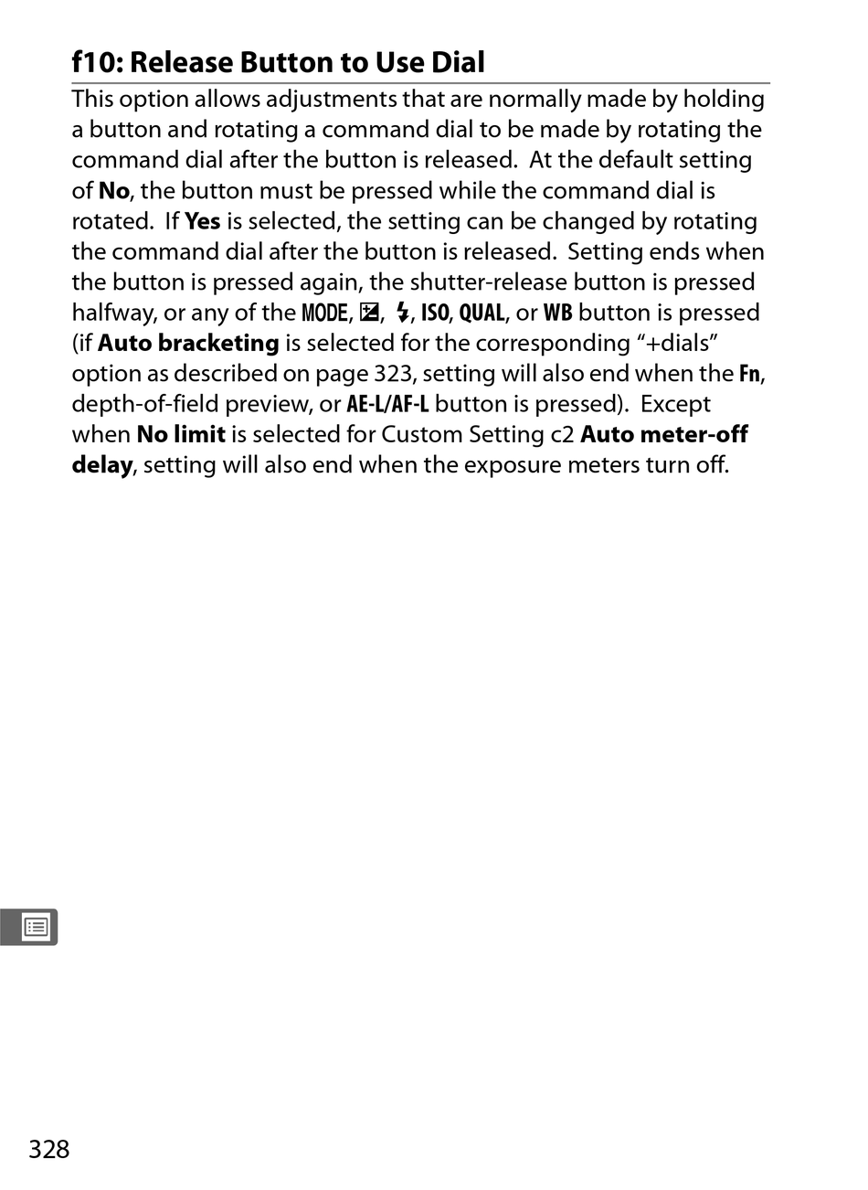 of No, the button must be pressed while the command dial is